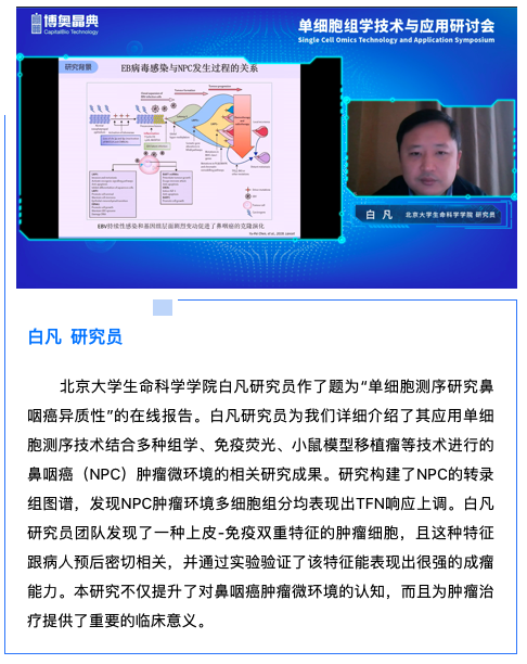 2020年10月31日,由生物芯片北京國(guó)家工程研究中心、北京博奧晶典生物技術(shù)有限公司主辦的“單細(xì)胞組學(xué)技術(shù)與應(yīng)用研討會(huì)”在北京成功舉辦。在疫情防控新形勢(shì)下,本次大會(huì)以線下現(xiàn)場(chǎng)會(huì)議與線上遠(yuǎn)程會(huì)議相結(jié)合的形式舉辦,打破時(shí)空及地域限制,以更寬更廣的交流平臺(tái),讓全國(guó)各地的單細(xì)胞領(lǐng)域?qū)<覍W(xué)者共同見(jiàn)證本次大會(huì)的精彩瞬間。本次會(huì)議線上累計(jì)直播瀏覽量超6000人次,線下100余位嘉賓出席。會(huì)議特采用專業(yè)級(jí)演播大廳進(jìn)行直播報(bào)告,通過(guò)5G+4K+AR的創(chuàng)新技術(shù)和高品質(zhì)傳輸進(jìn)行全程實(shí)時(shí)直播,為現(xiàn)場(chǎng)及遠(yuǎn)程參會(huì)代表帶來(lái)極好的視聽(tīng)體驗(yàn)。