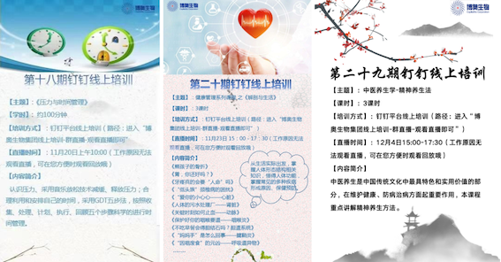 疫情期間,為確保員工身體健康、增強(qiáng)身體免疫力,博奧統(tǒng)一組織全體員工進(jìn)行新冠核酸檢測(cè),并在食堂餐廳熬制中藥代茶飲,清熱解毒、芳香辟穢、利濕避瘟。除此之外還開拓了線上培訓(xùn)方式,借助直播平臺(tái)為大家分享方方面面的健康管理知識(shí)。