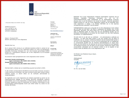 ? ? ? 近日,博奧晶典聯(lián)合清華大學(xué)成功研發(fā)的由新型冠狀病毒2019-nCoV核酸檢測試劑盒(全集成碟式芯片法),英文名稱:SARS-CoV-2 Nucleic Acid Detection Kit (Integrated Isothermal Amplification Chip Method)和全自動核酸分析儀,英文名稱:Automatic Nucleic Acid Analyzer組成的全集成芯片實(shí)驗(yàn)室系統(tǒng)獲CE準(zhǔn)入資質(zhì)(證書號:NL-CA002-2021-55957和NL-CA002-2021-55450),獲CE準(zhǔn)入資質(zhì)表明該產(chǎn)品符合歐盟醫(yī)療器械相關(guān)指令的符合性要求,具備歐盟市場的準(zhǔn)入條件,將為歐洲地區(qū)的新冠疫情防控工作提供高靈敏度全集成快速檢測工具。