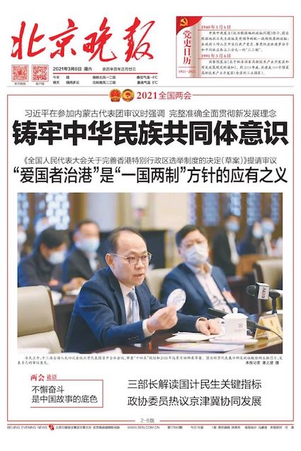 3月6日,十三屆全國人大四次會議北京代表團召開全體會議,審查“十四五”規(guī)劃和2035年遠景目標綱要草案。圖為程京代表展示團隊研發(fā)的全自動、全封閉式可在45分鐘內以150拷貝/毫升靈敏度完成“樣本入-結果出”,35分鐘就能報陽的“全集成新冠病毒核酸檢測芯片”(于2021年2月9日獲國家藥監(jiān)局應急審批批準和歐盟CE-IVD認證)。