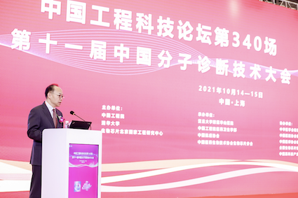2021年10月14日,“中國工程科技論壇第340場第十一屆中國分子診斷技術(shù)大會”在上海市盛大開幕。會議由中國工程院、清華大學(xué)、生物芯片北京國家工程研究中心主辦,復(fù)旦大學(xué)附屬華山醫(yī)院、中國工程院醫(yī)藥衛(wèi)生學(xué)部、中國抗癌協(xié)會、中國醫(yī)藥生物技術(shù)協(xié)會生物芯片分會承辦,中華醫(yī)學(xué)會檢驗(yàn)醫(yī)學(xué)分會、中國醫(yī)師協(xié)會檢驗(yàn)醫(yī)師分會、中國醫(yī)院協(xié)會臨床檢驗(yàn)管理專業(yè)委員會、全國生物芯片標(biāo)準(zhǔn)化技術(shù)委員會、中國高科技產(chǎn)業(yè)化研究會協(xié)辦。