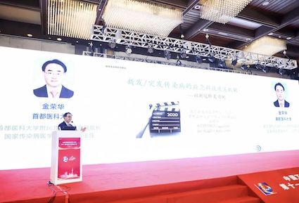 首都醫(yī)科大學(xué)附屬北京地壇醫(yī)院院長、國家傳染病醫(yī)學(xué)中心(北京)主任金榮華教授作報(bào)告