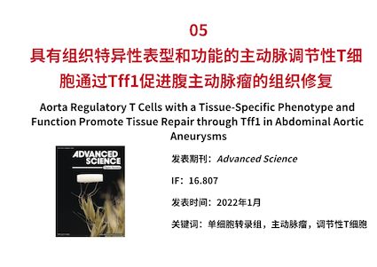 除了維持免疫耐受外,F(xiàn)oxp3+ 調(diào)節(jié)性 T 細(xì)胞 (Tregs) 在組織穩(wěn)態(tài)和重塑中發(fā)揮特殊作用。然而,動(dòng)脈瘤中的 Tregs 是否具有組織特異性的表型和功能尚不清楚。本研究中發(fā)現(xiàn)了一組特殊的可能抑制腹主動(dòng)脈瘤(AAA)進(jìn)展的 Tregs,并對(duì)其進(jìn)行了功能表征。主動(dòng)脈 Tregs 在 AAA 進(jìn)展中逐漸增加,主要來自外周循環(huán)。單細(xì)胞 TCR 測序和批量 RNA 測序顯示了它們獨(dú)特的表型和高表達(dá) Tff1。利用 Foxp3cre/creTff1flox/flox小鼠研究 AAA 中 Tff1 的作用,發(fā)現(xiàn)主動(dòng)脈 Tregs 分泌 Tff1 以調(diào)節(jié)平滑肌細(xì)胞 (SMC) 的存活。體外實(shí)驗(yàn)證實(shí) Tff1 通過細(xì)胞外信號(hào)調(diào)節(jié)激酶(ERK)1/2途徑抑制平滑肌細(xì)胞凋亡。這些發(fā)現(xiàn)揭示了主動(dòng)脈 Tregs 的組織特異性表型和功能,并可能為預(yù)防 AAA 提供一種有希望的新方法。