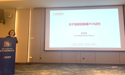 博奧晶典產(chǎn)品總監(jiān)劉瑩瑩博士作了題為《凍干型新冠病毒PCR試劑》的主題報告。作為今年即將重磅上市的嶄新產(chǎn)品,凍干型新冠病毒PCR試劑實現(xiàn)了技術上的重大突破。與液體試劑相比,預封裝的凍干試劑,省空間、省人力、省耗材、省時間,最快可在40分鐘內完成擴增檢測,滿足臨床對樣本質量及檢測過程的全程監(jiān)控,靈敏度高達150拷貝/毫升,確保結果準確可靠。同時,劉瑩瑩博士講到,包含全集成芯片實驗室系統(tǒng)、全集成新冠病毒核酸檢測移動實驗室、全自動分杯系統(tǒng)、全自動核酸提取純化儀在內的博奧晶典新冠病毒核酸檢測整體解決方案,可為疫情防控提供多重保障。