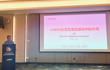 南昌大學第一附屬醫(yī)院呼吸與危重癥醫(yī)學科ICU主任淦鑫教授作了題為《mNGS在危機重癥感染中的應用》的主題報告。他介紹了目前急危重癥感染中病原診斷的急迫需求,及傳統(tǒng)病原學診斷方法的局限性。并介紹了mNGS技術在臨床上應用的發(fā)展情況及博奧晶典的mNGS技術。深刻分析了mNGS在急危重癥感染性疾病應用中尚存在的問題。以發(fā)表的SCI文章和臨床應用實例,介紹了mNGS技術在重癥肺炎、膿毒癥中的應用情況。對mNGS技術在臨床中的應用范圍、技術難點和對臨床感染性疾病診斷的重要意義做出了精彩的演講。