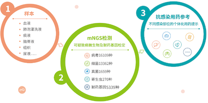 MAPMI®(Metagenomic Analysis Pipeline for Microbial Identification)技術(shù)是博奧晶典基于自主的BES4000高通量測序平臺研發(fā)的超廣譜病原體篩查技術(shù),覆蓋3.2萬種的病原微生物及5339種耐藥基因,可直接對樣本中的核酸進(jìn)行檢測,快速、精準(zhǔn)的獲得樣本中微生物序列信息,可對病原體的變異情況進(jìn)行進(jìn)一步追蹤監(jiān)控,在新發(fā)、突發(fā)重大疫情的監(jiān)控及快速反應(yīng)體系構(gòu)建上具有重大現(xiàn)實意義。同時,基于檢測結(jié)果及患者臨床特征,對可疑致病微生物按照不同感染部位提供個體化用藥提示,實現(xiàn)感染性疾病的診斷、用藥全流程診療。