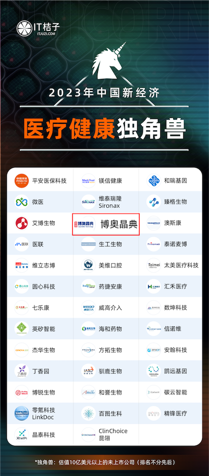 博奧晶典此次上榜中國(guó)新經(jīng)濟(jì)醫(yī)療健康獨(dú)角獸榜單,進(jìn)一步證明了博奧晶典在生命健康領(lǐng)域的發(fā)展?jié)摿?,以及業(yè)界對(duì)博奧晶典的關(guān)注與認(rèn)可。