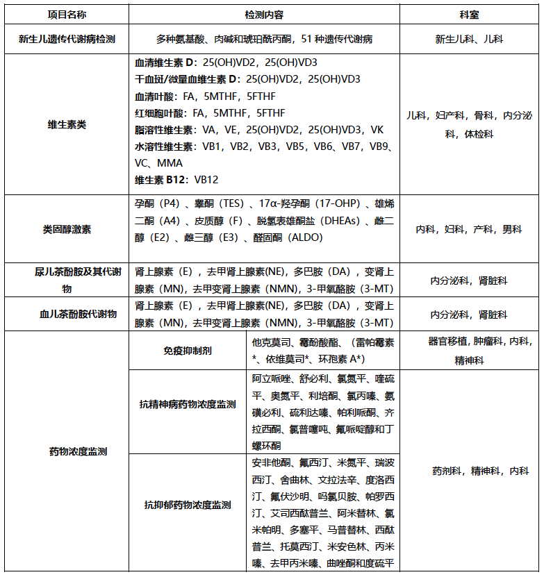 ? 30種試劑,基本滿足臨床需求,試劑適用范圍廣:DR TQ Mass以及AB和Waters系列儀器。